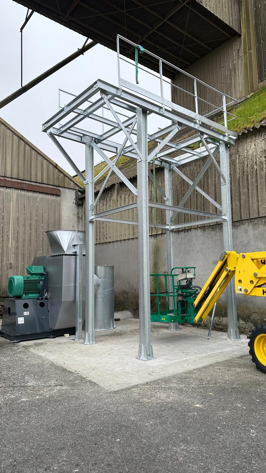 Charpentes acier, passerelles d’accès, plateformes techniques et structures porteuses, conçues, calculées et posées en toute sécurité.